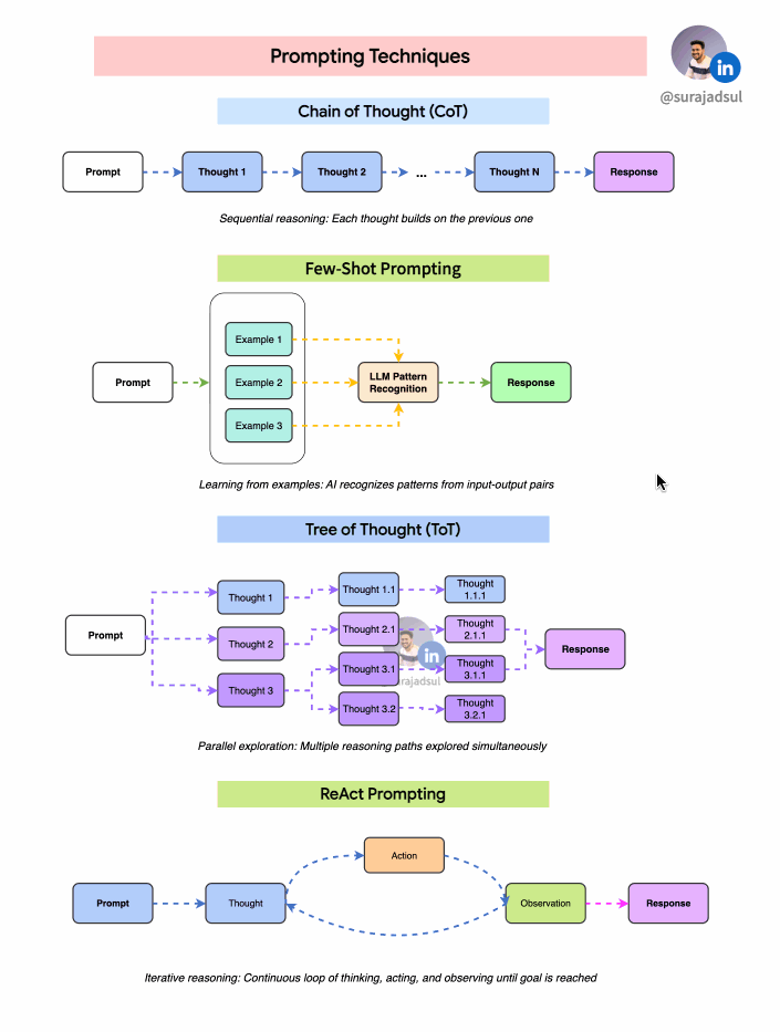 Before diving into examples, understand this: prompting techniques are the building blocks of effective AI agents. Whether you're building automated workflows, customer service bots, or research assistants, the quality of your agent's performance directly depends on how well you structure its reasoning process.